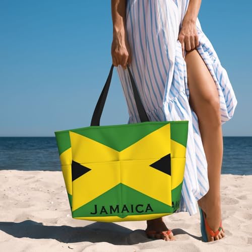 Jamaican Flag Women Large Beach Bag Travel Weekender Foldable Tote Bag for Pool Beach Vacation Gym 1