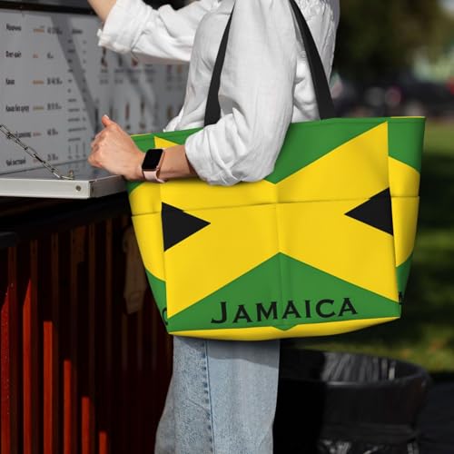 Jamaican Flag Women Large Beach Bag Travel Weekender Foldable Tote Bag for Pool Beach Vacation Gym 7