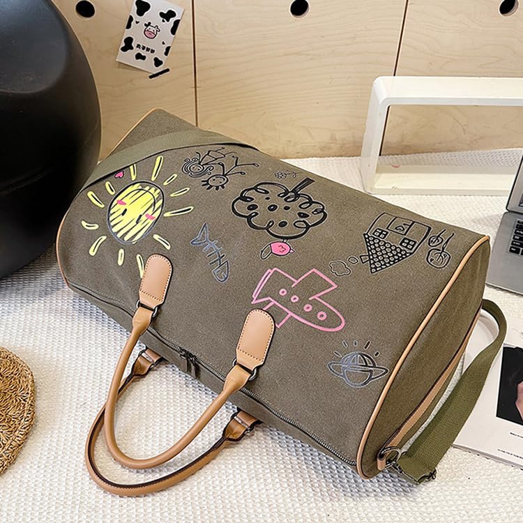 More information about FUNSEED Cute Graffiti Outdoor Travel Bag for Women Men, Storage Bag Large Capacity Leisure Canvas Handbag Luggage Bag Gym Bag (Black)