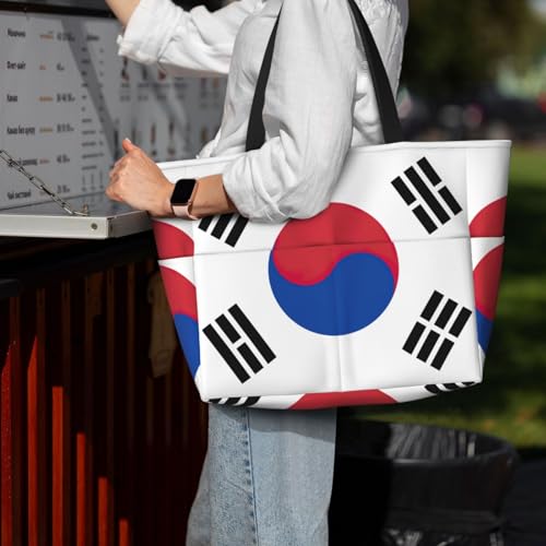 HOT ! Flag Of Republic Of Korea Print Large Tote Bag For Women, Travel Shoulder Bag Handle Handbag For Gym, Work, Travel