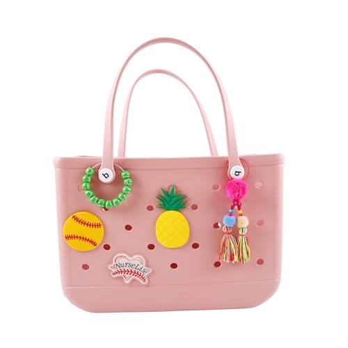 HOT ! Tassel and Pom Poms Charm Accessory for Bogg Bag and Simply Southern Totes,Pink Decorative for Rubber Beach Handbag
