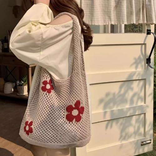 HOT ! Crochet Tote Bag with Cute KeyChain Sunflower Bracelet - Aesthetic Mesh Beach & Pool Hobo Bag