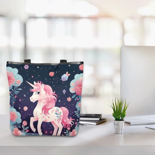 Cute Unicorn Canvas Tote Bag for Women Large Tote Bag with Zipper & Pockets Canvas Beach Bag Shoulder Bag Reusable Shopping Bags Cute Tote Bags for Work Travel 7