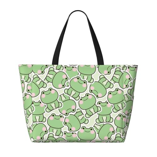 HOT ! Cute Frog Sitting Pose Funny Large Beach Bag Waterproof Sandproof Swim Tote Pool Bag For Women With Zipper