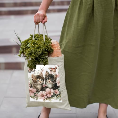 HOT ! Cat Women Canvas Tote Bag - Cute Aesthetic Reusable Grocery Shoulder Bags for Gifts, Shopping, Travel, Vacation