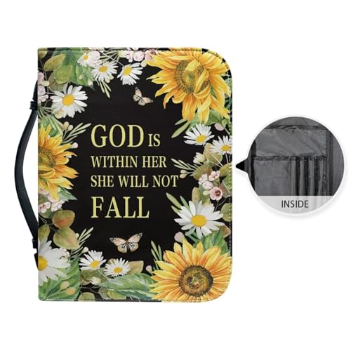 HOT ! Sunflower Bible Cover for Women Bible Proverb Carrying Case with Handle PU Leather Church Tote Bag with Bookmark Fits for Large Size Books