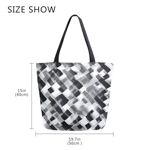 HOT ! Extra Large Shoulder Tote Bag for Beach Travel Weekender Gym Black White Checked Pattern Reusable Grocery Canvas Shopping Bag