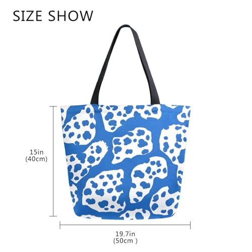 HOT ! Extra Large Shoulder Tote Bag for Beach Travel Weekender Gym Blue White Leopard Print Reusable Grocery Canvas Shopping Bag