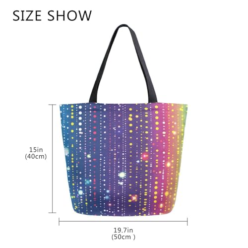 HOT ! Extra Large Shoulder Tote Bag for Beach Travel Weekender Gym Dots Rainbow Pattern Reusable Grocery Canvas Shopping Bag