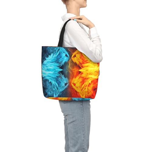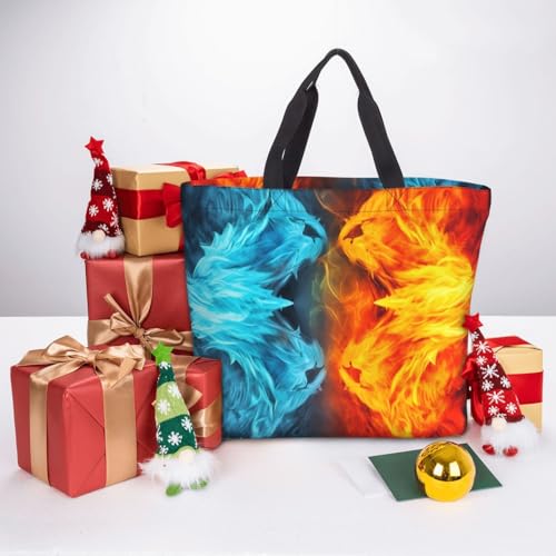 HOT ! Fire vs ice art Tote Bag for Women, Zipper Casual Tote's Handbag for Travel, Work, Lightweight Laptop Bags Big Capacity Shoulder Bag Reusable Grocery Shopping Bags