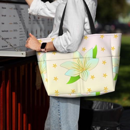 • Dimensions and capacity: ThisBlooming Daffodils beach travel bag has seven pockets and measures 45 cm long, 38 cm high and 17 cm thick. It weighs only 289 grams. The side pockets can conveniently hold water bottles, mobile phones and keys, providing ample storage space for your personal items, whether it be a laptop, books, cosmetics or everyday essentials.