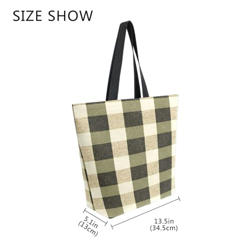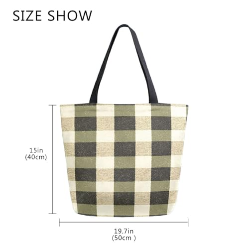 HOT ! Extra Large Shoulder Tote Bag for Beach Travel Weekender Gym Olive - Black Check Pattern Reusable Grocery Canvas Shopping Bag