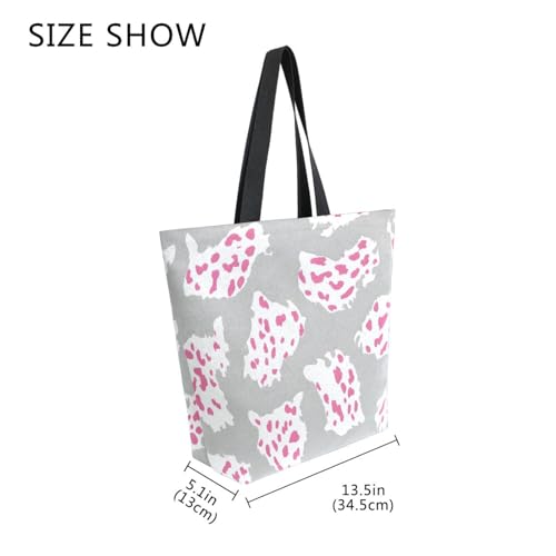 Extra Large Shoulder Tote Bag for Beach Travel Weekender Gym Leopard Print Pink Grey Reusable Grocery Canvas Shopping Bag 6