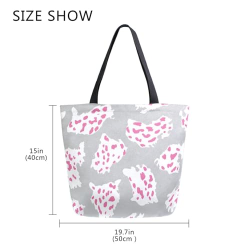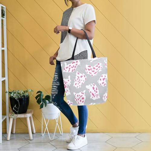 Extra Large Shoulder Tote Bag for Beach Travel Weekender Gym Leopard Print Pink Grey Reusable Grocery Canvas Shopping Bag 7