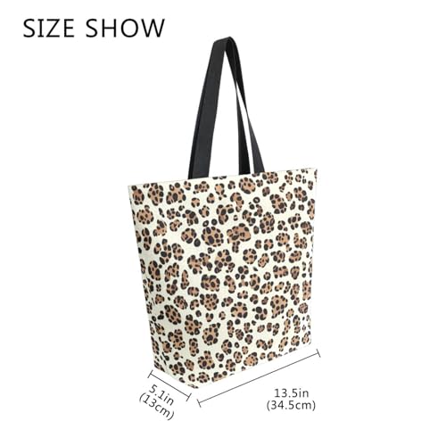 Extra Large Shoulder Tote Bag for Beach Travel Weekender Gym Leopard Print Brown Animal Black Reusable Grocery Canvas Shopping Bag 7