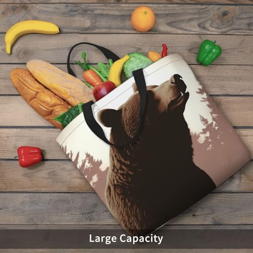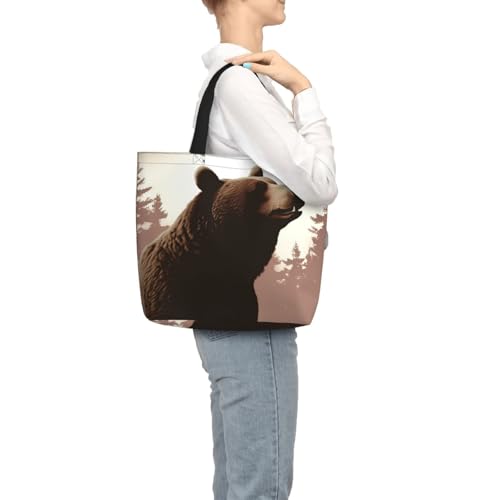 HOT ! Wild Bear Tote Bag for Women, Zipper Casual Tote's Handbag for Travel, Work, Lightweight Laptop Bags Big Capacity Shoulder Bag Reusable Grocery Shopping Bags