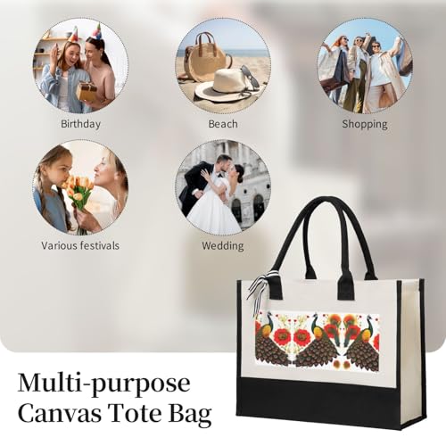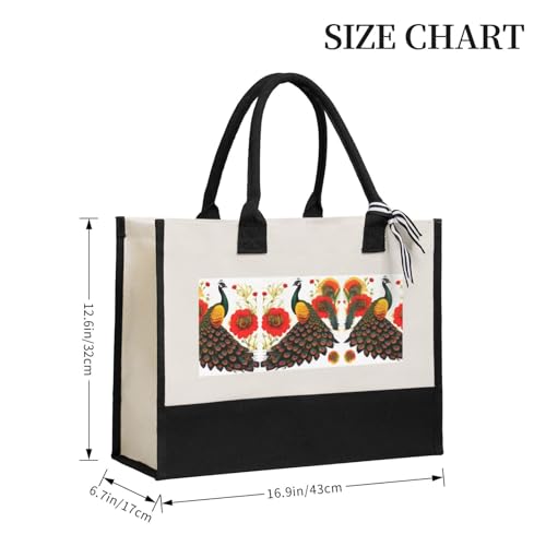 • Premium Material: This Peacock Red flower printed tote bag is made from high-quality canvas, which is tear-resistant, durable, and provides excellent support. It also feels smooth and gentle on the skin, making it durable for daily use.