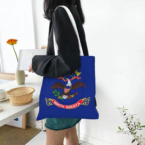 North Dakota State Flag Print Polyester Canvas Tote Bag, Shopping Bag With Reinforced Handles, Reusable 5