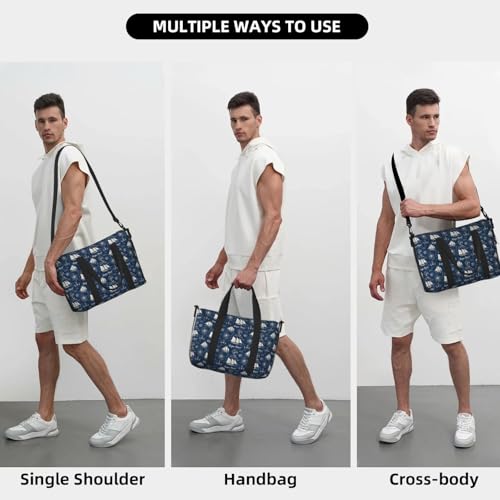 Travel Duffle Bags For Women Men - Navy Blue Nautical Pattern Print Personal Item Weekender Overnight Gym Carry On Airport Tote Bag With Strap For Yoga, Travel, Business Trips 6