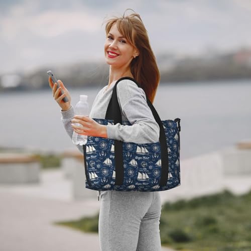 Travel Duffle Bags For Women Men - Navy Blue Nautical Pattern Print Personal Item Weekender Overnight Gym Carry On Airport Tote Bag With Strap For Yoga, Travel, Business Trips 1