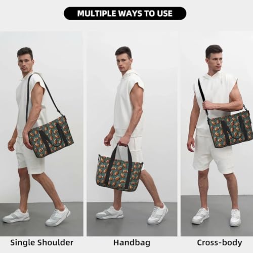 Travel Duffle Bags For Women Men - Vintage Green Football Print Personal Item Weekender Overnight Gym Carry On Airport Tote Bag With Strap For Yoga, Travel, Business Trips 5