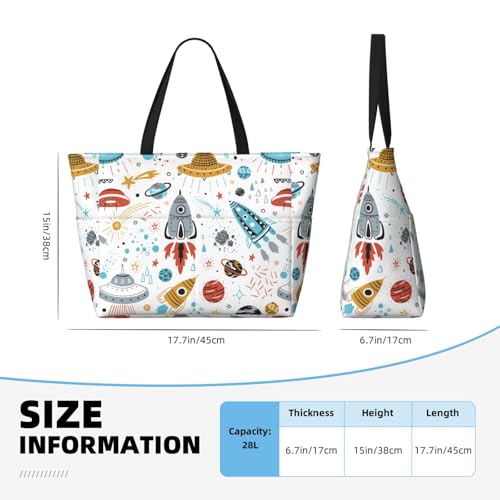 • Stylish & Vibrant Design. Stand out with our eye-catching, Cartoon Rockets print beach bag that radiates fun and energy! Whether you are heading to the shore, pool, or gym, this playful pattern adds a splash of joy to your adventures. Unlike plain totes, our unique design turns heads and sparks conversations - because who says practicality can not be fashionable?
