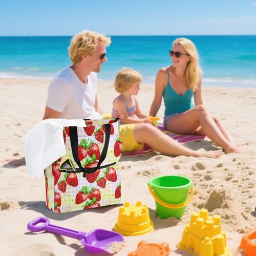 Strawberries Book Tote Bag,Large Capacity Handbag with Zipper Perfect for School,Travel,Shopping 1