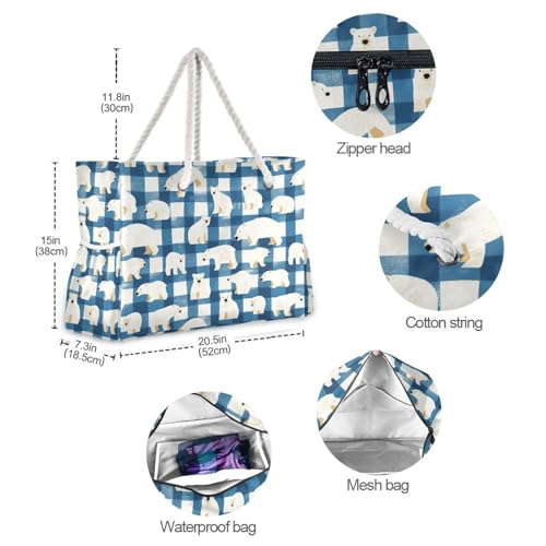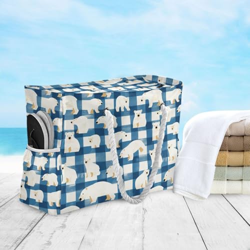 Blue White Polar Bears Sturdy Bag Sports Tote Gym with side pocketes Big Tote Bags for Pool Gym Grocery Travel 3