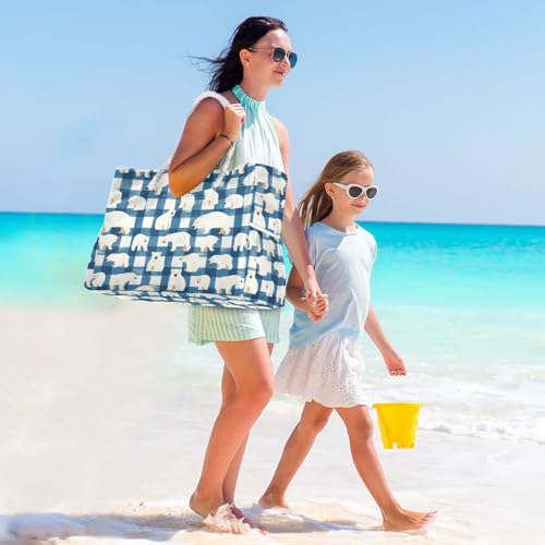 Blue White Polar Bears Sturdy Bag Sports Tote Gym with side pocketes Big Tote Bags for Pool Gym Grocery Travel 6