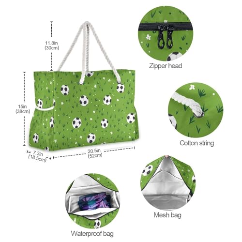 Green Field Football Sandproof Bag Carry On with side pocketes Tote Bag Portable with cup holders on the side 4