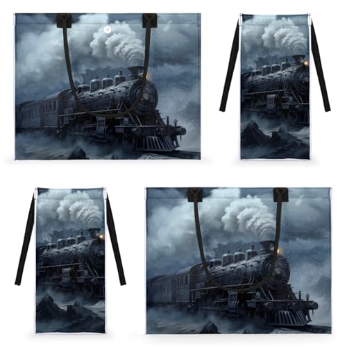 Night Winter Train Tote Bag for Women Large Beach Bag Reusable Tote Bags for Work Travel Beach Shopping 4