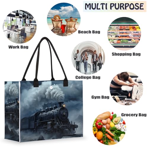 HOT ! Night Winter Train Tote Bag for Women Large Beach Bag Reusable Tote Bags for Work Travel Beach Shopping