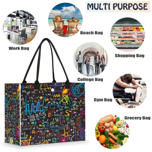 HOT ! Mathematics Formula Subject Tote Bag for Women Large Beach Bag Reusable Tote Bags for Work Travel Beach Shopping