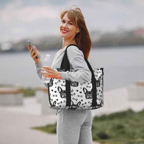 HOT ! Laptop Tote Bag for Women Work - Black French Bulldog Print Weekender Overnight Bags for Women Travel, Gym Duffle Bag for Men, Personal Item Crossbody Travel Bags for Men Carry On