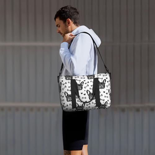 Laptop Tote Bag for Women Work - Black French Bulldog Print Weekender Overnight Bags for Women Travel, Gym Duffle Bag for Men, Personal Item Crossbody Travel Bags for Men Carry On 7