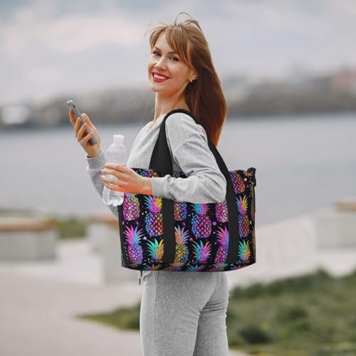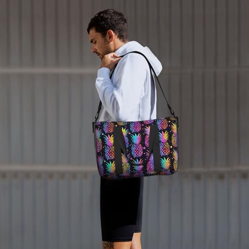 Laptop Tote Bag for Women Work - Pink Tropical Pineapple Print Weekender Overnight Bags for Women Travel, Gym Duffle Bag for Men, Personal Item Crossbody Travel Bags for Men Carry On 7