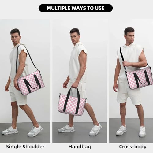 Laptop Tote Bag for Women Work - Pink Pastel Checkered Print Weekender Overnight Bags for Women Travel, Gym Duffle Bag for Men, Personal Item Crossbody Travel Bags for Men Carry On 5