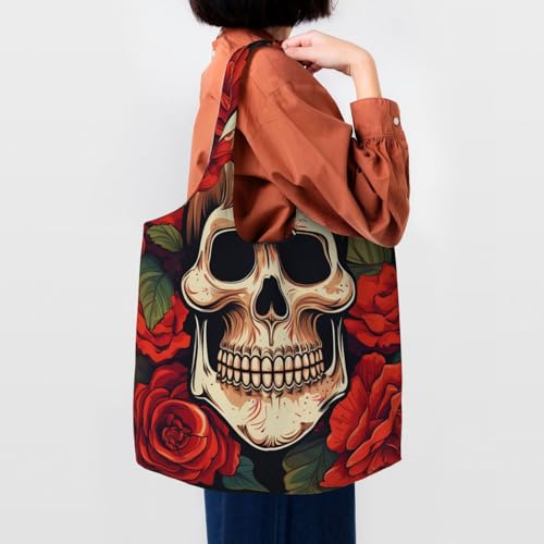 • MULTIPURPOSE - These reusable shopping totes bag can be used as grocery shopping bag, gift bag, canvas craft bag, library bag, vacation bag, beach bag, Sugar Skull Rose shopping bag and more, also can be used as DIY art crafts for women