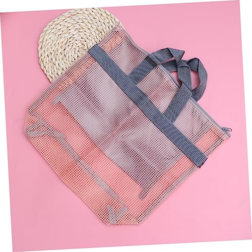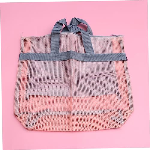 Large Capacity Mesh Tote Bag for Women Versatile Beach Picnic Travel Storage with Zippered Pocket for Essentials Outdoor Activities Pink 7