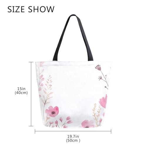 HOT ! Extra Large Shoulder Tote Bag for Beach Travel Weekender Gym Watercolor Wildflowers Pink Flowers Reusable Grocery Canvas Shopping Bag