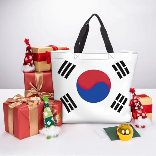 HOT ! Flag Of Republic Of Korea Print Tote Bags, Large Capacity Zipper Shoulder Bag, For Shopping, Work, Daily