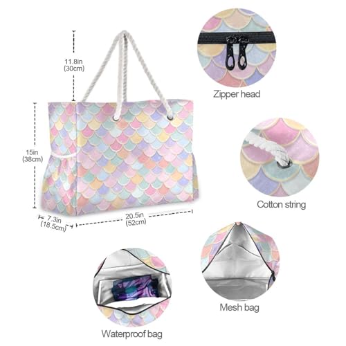 More information about Rainbow Scales with Sparkles Beach Bag & Travel Tote Bag Large Sandproof with Zipper Closure, Wet Pouch for Swim Gym Travel, Lightweight Foldable Outdoor Bag