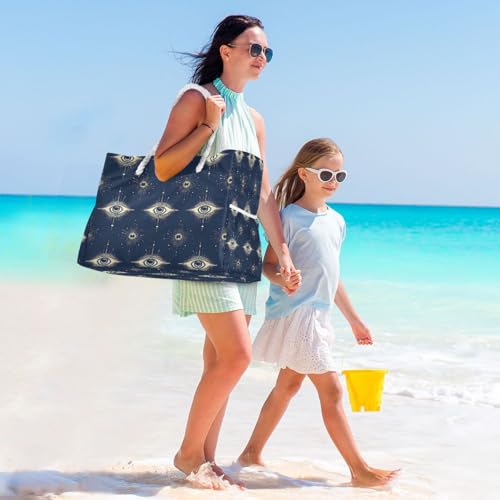 More information about Blue and Back Evil Eye (3) Beach Bag & Travel Tote Bag Large Sandproof with Zipper Closure, Wet Pouch for Swim Gym Travel