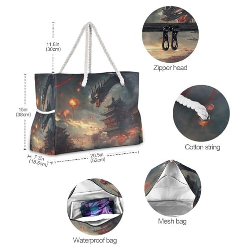 More information about Dragon Dark Clouds Beach Bag & Travel Tote Bag Large Sandproof with Zipper Closure, Wet Pouch for Swim Gym Travel