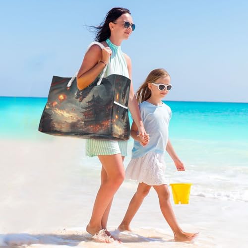 HOT ! Dragon Dark Clouds Beach Bag & Travel Tote Bag Large Sandproof with Zipper Closure, Wet Pouch for Swim Gym Travel