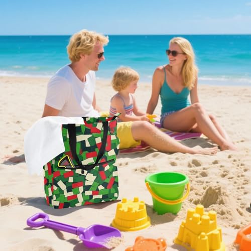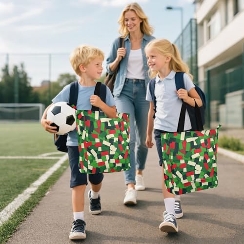 HOT ! Decorative Cute Book Tote Bag for Kids Adults, Camouflage Mah-jong Style Large Library Book Tote Shopping Bag with Zipper Handles for School Shopping Grocery Rainbow bolsa de tela para