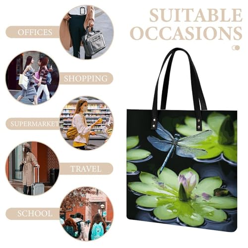 • 【Waterproof & Durable PU Leather】Crafted with sturdy waterproof PU leather, this Dragonfly Flies Over tote bag resists stains and spills. Soft yet unbreakable reinforced straps ensure long-lasting daily use. Easy to clean!