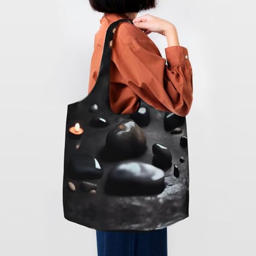 HOT ! Black Mystery Heart Stone Printed Canvas Bag Women's Fashion Shoulder Tote Bag Lightweight Shopping Bag