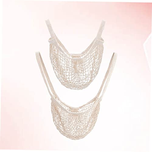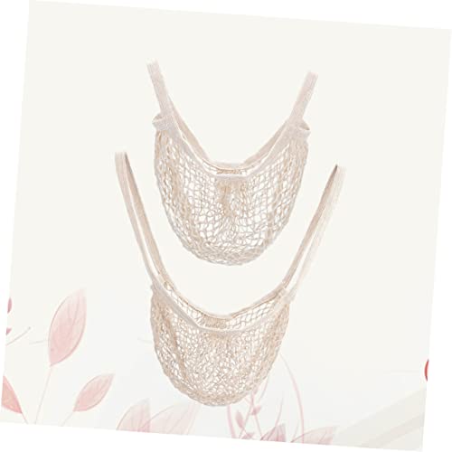 2 Pcs Fashion Cotton Handbag Lightweight Mesh Bag for Shopping Beach and Travel Portable Tote with Soft Handles for Easy Carrying 5