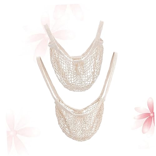 2 Pcs Fashion Cotton Handbag Lightweight Mesh Bag for Shopping Beach and Travel Portable Tote with Soft Handles for Easy Carrying 7